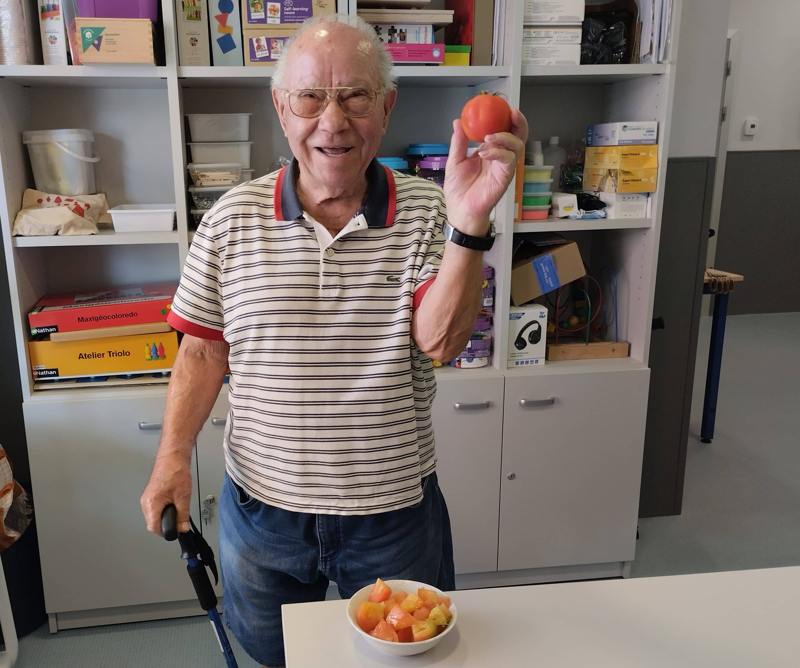 En Valdeluz Arroyomolinos os recibimos con frutas y verduras frescas recién recolectadas de nuestro huerto ecológico.   Es una actividad que nos encanta y en la que todos colaboramos repartiendo las tareas teniendo en cuenta lo habilidosos que somos en cada una de ellas. ¡Estamos encantados!  El taller de Huerto terapia tiene grandes beneficios físicos, cognitivos